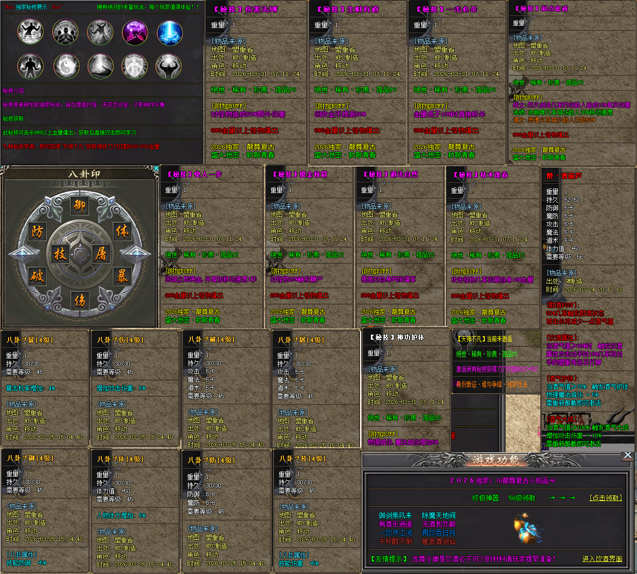 最新装备极品属性:全新玩法,小极品属性,藏蛊,让你乐在其中.全身极品+4、+5、+6都有强大的属性.