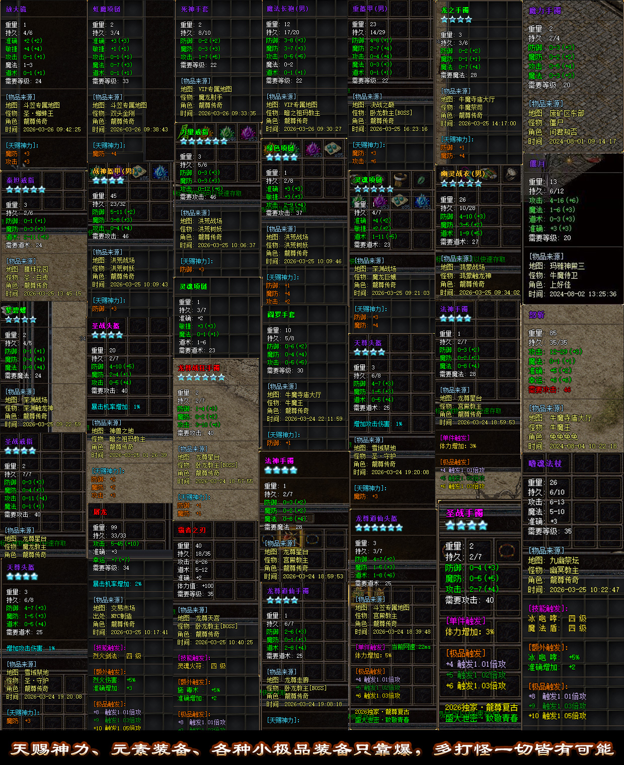 所有地图免费进,极品+6装备只能靠怪爆,+5+6非常值钱,散人追梦,各大小地图均随机刷新28888血BOSS[爆终级]